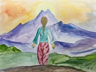 Berge sind in der indischen Kultur heilige Orte. Deshalb steht auch jeder Hindutempel auf einem Berg oder ist gebaut wie ein Berg. Er muss immer über etliche Stufen erklommen werden. Der Berg steht im Yoga auch immer symbolisch für den Weltenberg Meru. Er ist der Mittelpunkt des mystischen Universums. Er ist unvorstellbar hoch und sein Gipfel verliert sich in den Weiten des Himmels. Gleichzeitig wurzelt er unendlich tief in der Erde. Meru ist auch der Ursprung aller großen Flüsse, die in den Ebenen die Felder bewässern und die Menschen so nähren. Jeder Mensch trägt mit seiner Wirbelsäule ein Abbild des Weltenberges in sich, so heißt es in verschiedenen Yogatexten.